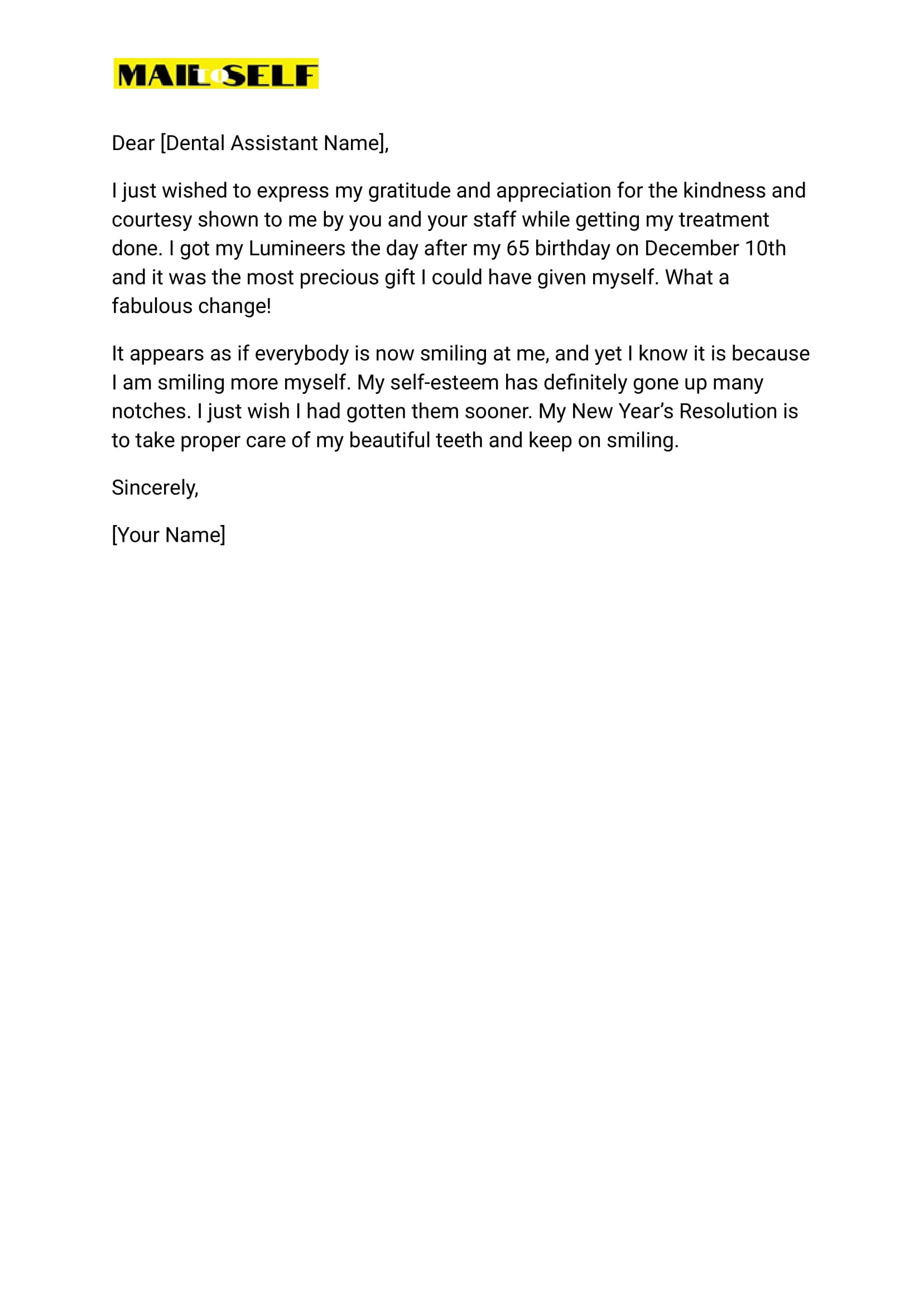 We all know it is a polite thing to say thank you after someone does or gives something to you. As such, should you not write a dental assistant thank you letter after they gave taken such good care of you when you visited the clinic?